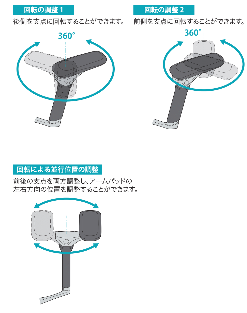 - 7Dアームレスト:上下・前後・回転・角度など、あらゆる動きに対応